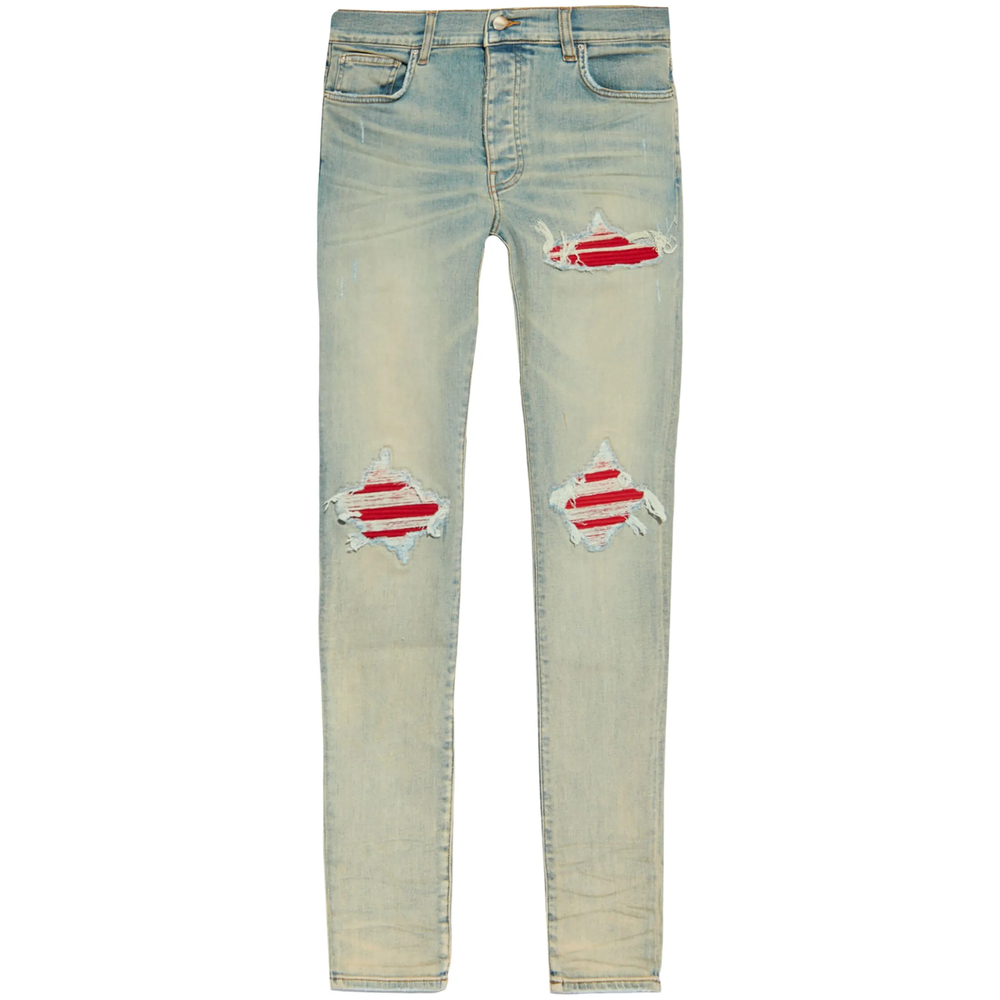 light blue stretch-cotton faded effect whiskering effect ripped detailing skinny cut low-rise logo patch to the rear belt loops front button and zip fastening classic five pockets