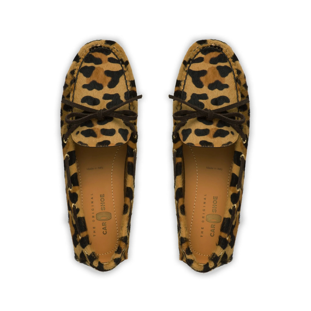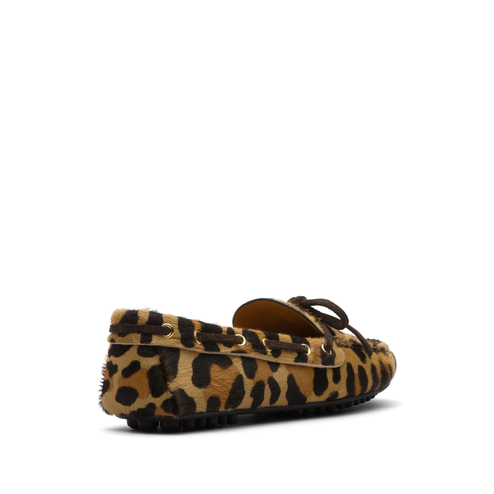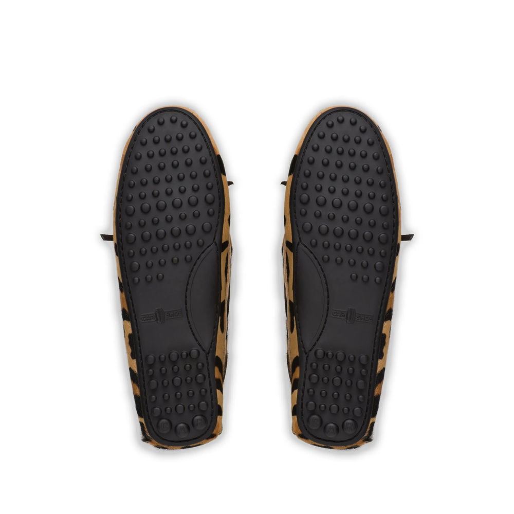 camel brown/black calf hair/calf leather leopard print slip-on style round toe bow detailing pebbled rubber sole