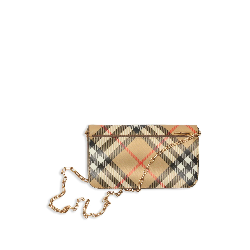 archive beige cotton blend/lambskin Vintage Check pattern chain-link shoulder strap gold-tone hardware rear zip-fastening pocket foldover top with magnetic fastening main compartment