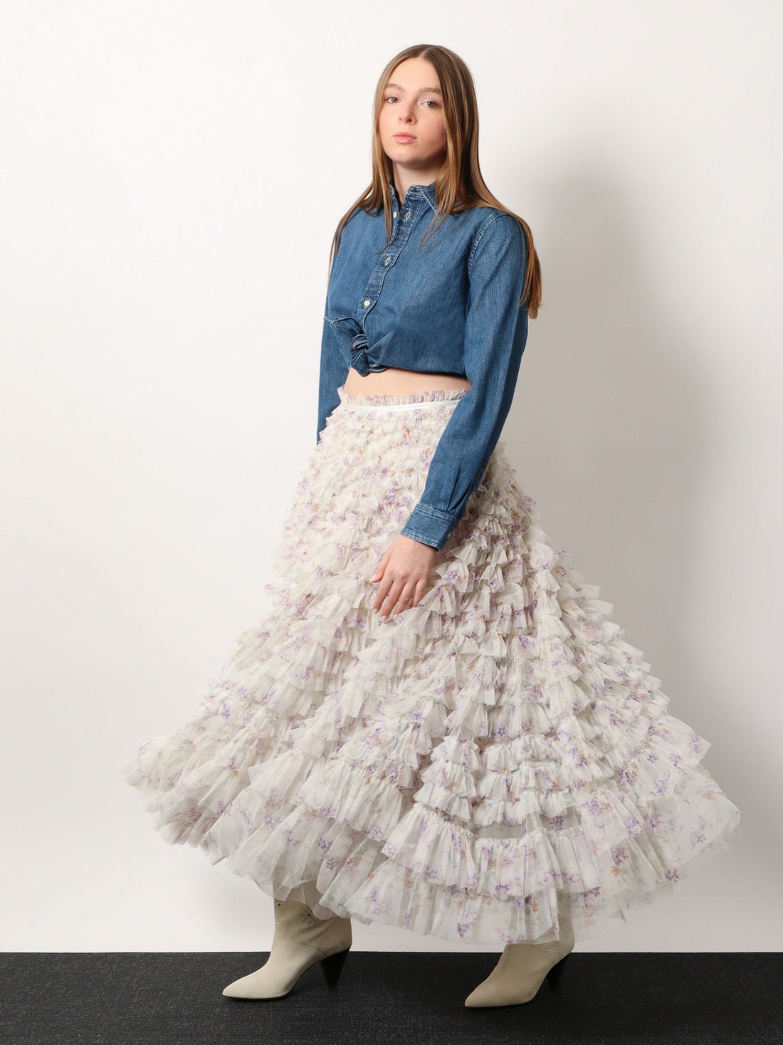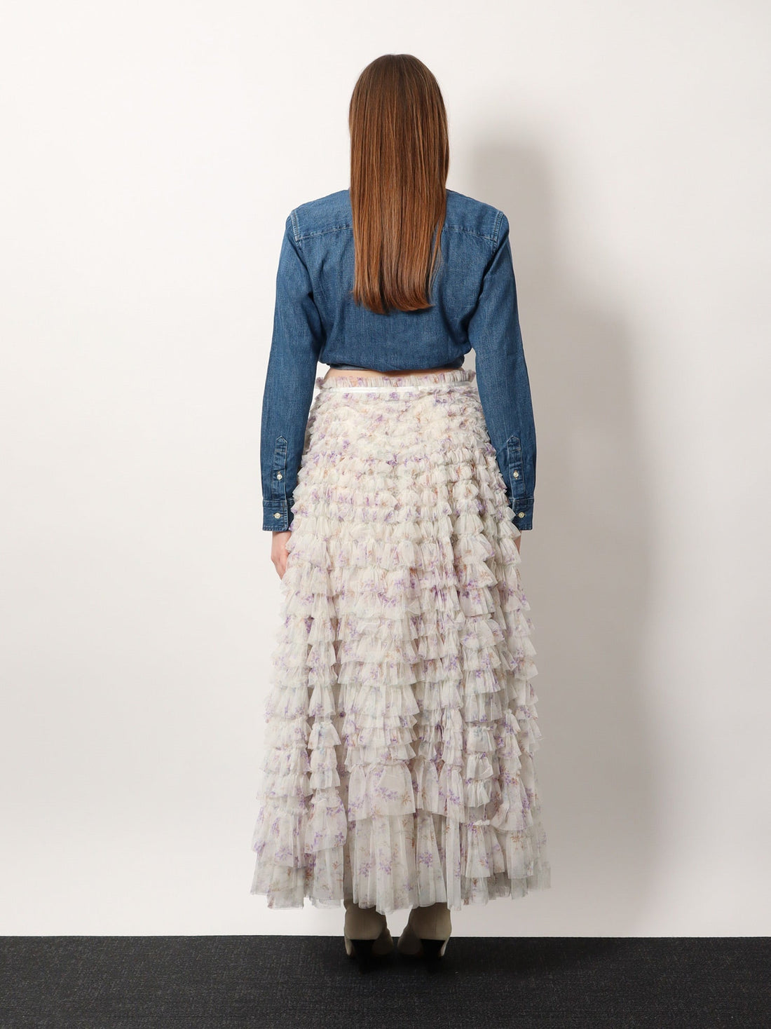 Ruffled tulle long skirt