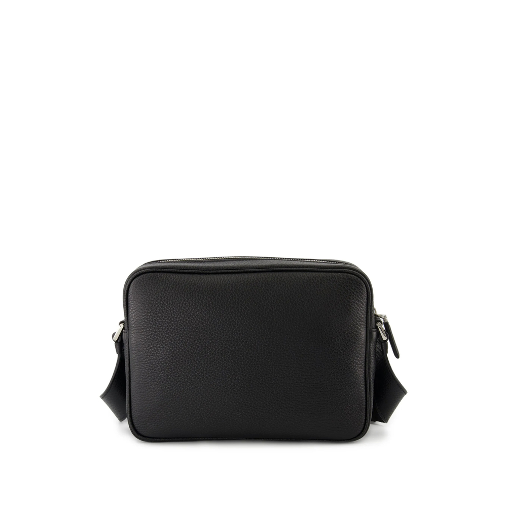 black embossed logo plaque zip fastening adjustable shoulder strap rectangular design tonal stitching