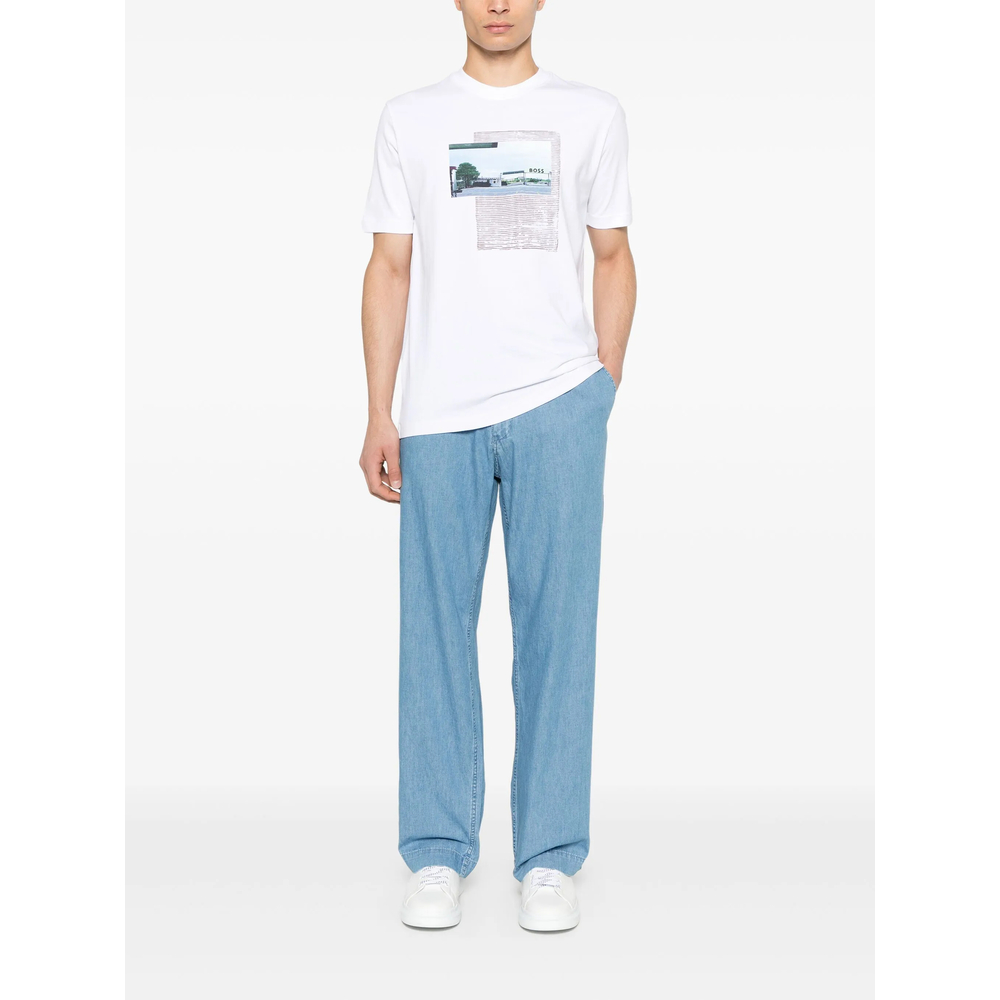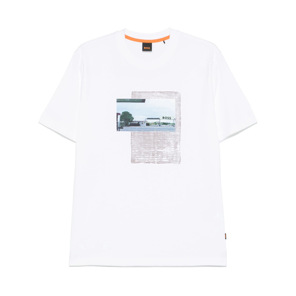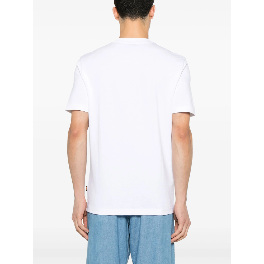 white crew neck short sleeves raised logo detail mini logo tag